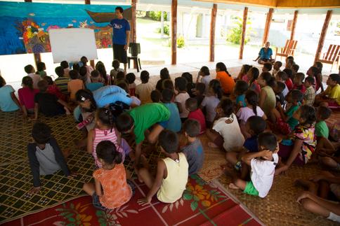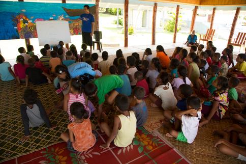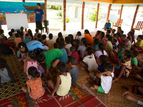 Conservation International Samoa and our partners work to bring environmental education to communities via Samoa's traditional double-hulled canoe, the Gaualofa. Transforming into a floating classroom, the use of the Gaualofa also helps connect young Samoans with their voyaging culture.